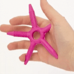 SolaBite® firmy ARK łączy wiele funkcji w jednym ciekawym gryzaku. Pięć ramion o różnej teksturze do gryzienia nigdy się nie nudzi, każde z ramion pokryte jest inną fakturą: okrągłymi prążkami, zygzakowatymi nierównościami, liniami, wypustkami oraz jedno z ramion jest gładkie - marzenie poszukiwacza zmysłów. Każde z ramion jest wystarczająco długie, aby dotrzeć do tylnych zębów trzonowych.
