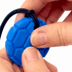 Naszyjnik ARK's Soccer Ball to idealny gryzak dla fanów piłki nożnej. Ten okragły wisiorek w kształcie dysku ma około 4,4 cm. średnicy i 1,2 cm. w najgrubszej części - idealny dla tych, którzy preferują żucie zębami przedtrzonowymi i/lub przednimi. Jest to idealna i bezpieczna alternatywa dla żucia ołówków, koszulek, palców itp. pomagająca w skupieniu i samoregulacji.
