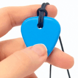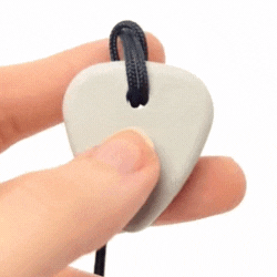 ARK Guitar Pick -  Miniaturowy gryzak w kształcie kostki gitarowej, w formie naszyjnika. Bardzo wygodna i dyskretna oraz bezpieczna alternatywa w stosunku do gryzienia kredek, pisaków czy własnych palców. Szczególnie polecane dla dzieci tzw. "przeżuwaczy", którym pozwala odreagować różnego rodzaju stresy dając możliwość skupienia np. na pracy domowej lub innych zajęciach wymagających zwiększonej uwagi.