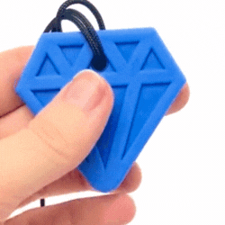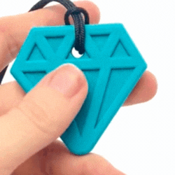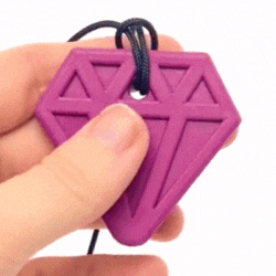 Gryzak w kształcie Diamentu w formie naszyjnika. Bardzo wygodna i bezpieczna alternatywa w stosunku do gryzienia kredek, pisaków czy własnych palców. Szczególnie polecane dla dzieci tzw "przeżuwaczy", którym pozwala odreagować różnego rodzaju stresy dając możliwość skupienia np. na pracy domowej lub innych zajęciach wymagających zwiększonej uwagi.