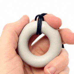 Gryzak w kształcie kółeczka w formie naszyjnika. Bardzo wygodna i bezpieczna alternatywa w stosunku do gryzienia kredek, pisaków czy własnych palców. Szczególnie polecane dla dzieci tzw "przeżuwaczy", którym pozwala odreagować różnego rodzaju stresy dając możliwość skupienia np. na pracy domowej lub innych zajęciach wymagających zwiększonej uwagi.