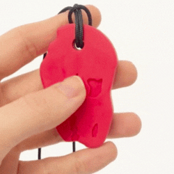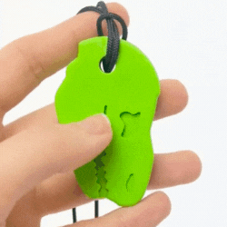 Gryzak w kształcie Głowy Dinozaura w formie naszyjnika. Bardzo wygodna i bezpieczna alternatywa w stosunku do gryzienia kredek, pisaków czy własnych palców. Szczególnie polecane dla dzieci tzw "przeżuwaczy", którym pozwala odreagować różnego rodzaju stresy, dając możliwość skupienia np. na pracy domowej lub innych zajęciach wymagających zwiększonej uwagi.