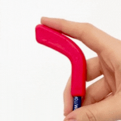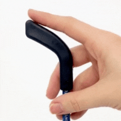 Gryzak w kształcie kija hokejowego w formie nasadki na ołówek, długopis.